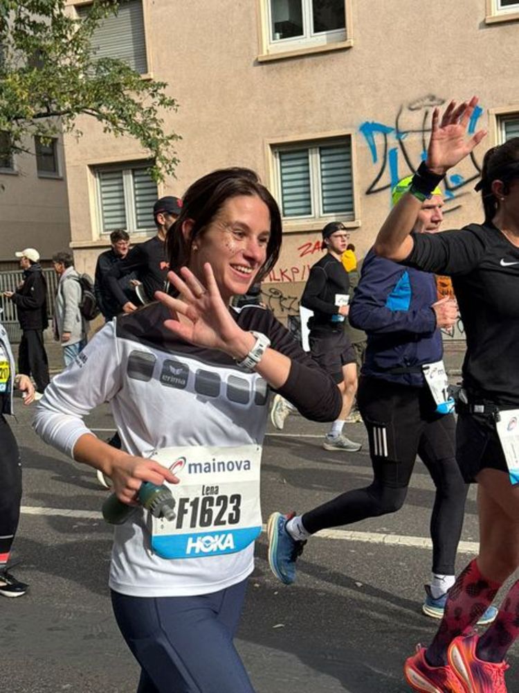 Am Sonntag, den 26. Oktober 2025, fand mit dem 42. Mainova Frankfurt Marathon eines der größten Laufevents Deutschlands mit über 12.000 Finishern statt. Unter ihnen war auch Lena Frey, die sich erfolgreich der 42,195 Kilometer langen Strecke durch die Frankfurter Skyline stellte. Bei idealem Laufwetter mit kühlen Temperaturen und leichtem Wind zeigte Lena eine starke und gleichmäßige Leistung. Sie passierte die Halbmarathonmarke nach 1:59:45 Stunden und konnte ihr Tempo auch auf der zweiten Streckenhälfte nahezu konstant halten. Mit ihrer Zielzeit von 3:58:57 Stunden blieb sie deutlich unter der Vier-Stunden-Marke und erreichte damit Platz 242 in ihrer Altersklasse W30 (Platz 1121 bei den Frauen)