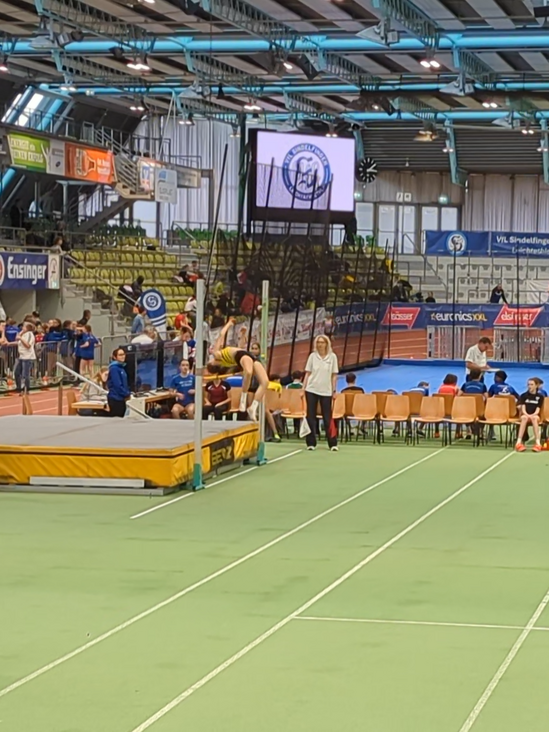 Für Elina Winckler (W14) startete der lange Tag mit dem Hochsprung, gemeinsam mit Samira. Dort blieb sie etwas unter ihren Möglichkeiten und sprang zu 1,25m. Im darauffolgenden 60m-Lauf konnte sie dann an ihre tolle Zeit von der letzten Woche anschließen und sprintete zu 9,15s.