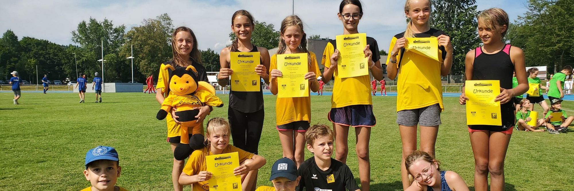 Fünf Disziplinen mussten die Kinder bei den heißen Temperaturen absolvieren, darunter Weitsprung, Werfen, 50m Sprint, eine Hüpfstaffel und am Ende eine 600m Hindernisstrecke.