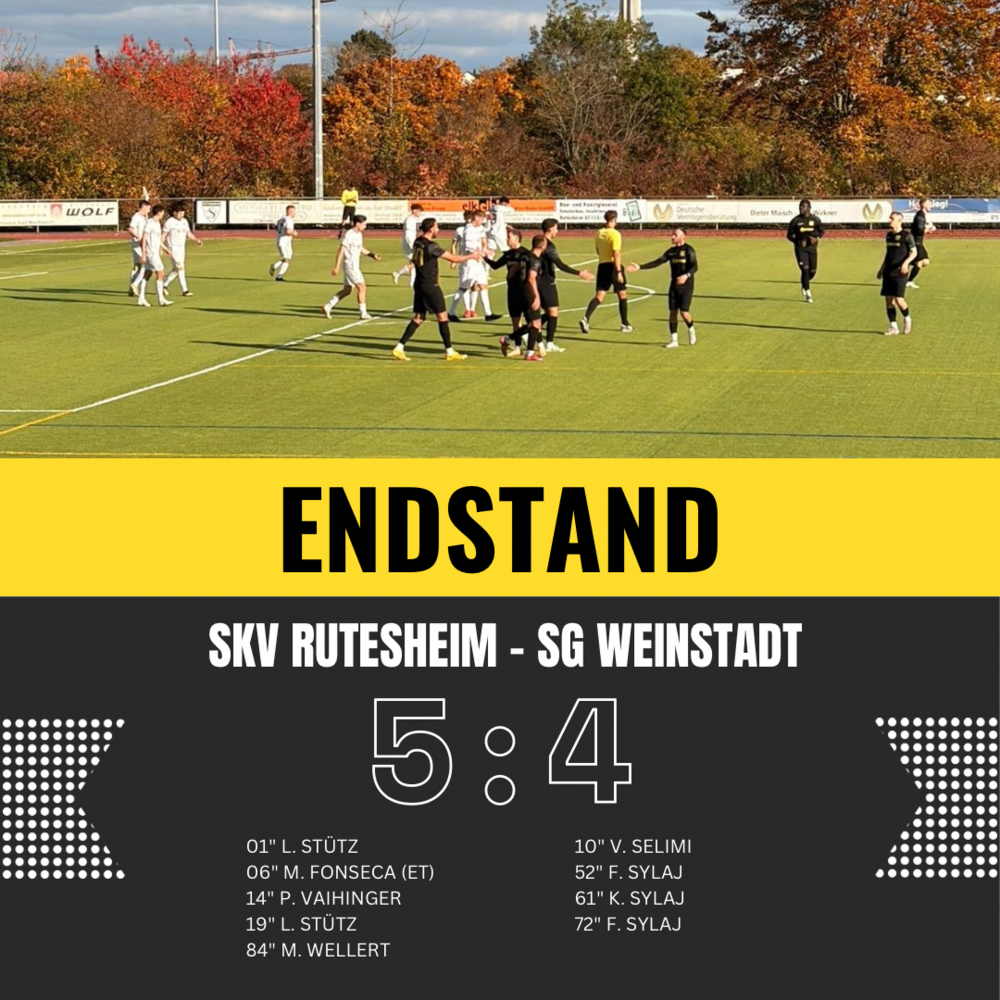 Nach dem Seitenwechsel standen dann alle nominierten Spieler zur Verfügung und das Team wurd auf 3 Positionen umgestellt. Anschließend rieben sich alle Zuschauer verwundert die Augen - Weinstadt verkürzte in der 52. Minute auf 4:2 durch Faton Sylaj, in der 61. Minute das 4:3 durch Kujtim Sylaj und in der 72. Minute das 4:4 wiederum durch Faton Sylaj - spätestens jetzt wurden die Rutesheimer richtig nervös - war doch nach der ersten Hälfte der dreifgache Punktgewinn schon fest eingeplant. Weinstadt war dem nächsten Treffer in dieser Phase gegen schockierte Gastgeber deutlich näher aber den Sieg tüteten letztendlich die Rutesheimer mit dem 5:4 in der 81. Minute ein. Schade - für diese wirklich sehenswerte 2. Hälfte hätte das Team wenigstens einen Punkt verdient gehabt.
