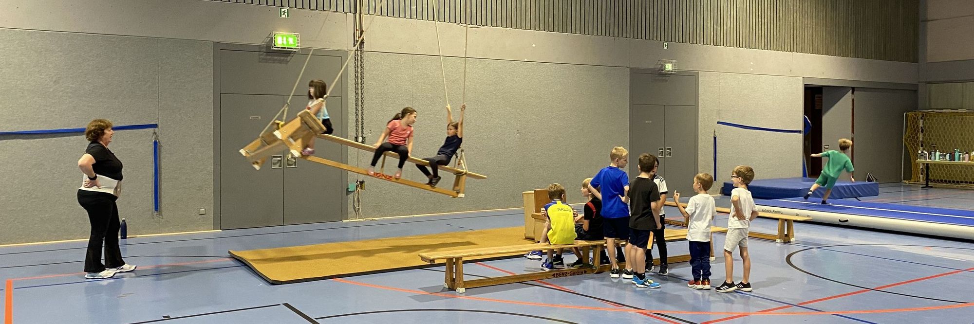Am Montag, den 4.September haben 50 Kinder in der Beutelsbacher Halle einiges erlebt. Sie konnten klettern, kriechen, hüpfen, fliegen, turnen, springen, sich einfach auspowern mit ganz viel Freude. Die Kinder waren sehr nett zueinander, ein ganz großes Lob!