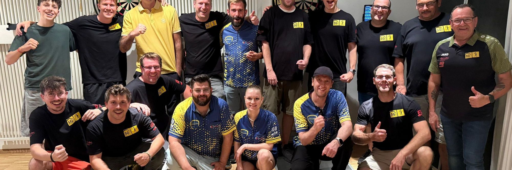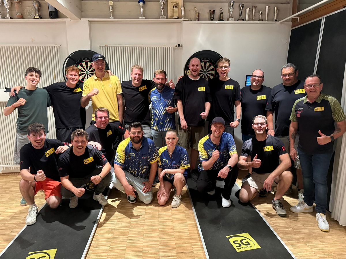 Am vergangenen Samstag holte die SG Weinstadt Darts ihren ersten offiziellen Pflichtspielsieg - und das bei ihrem ersten Ligaauftritt überhaupt! Nach einem souveränen 10:2 Heimsieg über die SV Salamander Kornwestheim 3 rangiert man nach dem ersten Spieltag auf dem zweiten Tabellenplatz der Dart-Liga-Schwaben. Die Weinstädter starteten schon gut in den ersten der zwei Einzelblöcke und gewannen 3 aus den ersten 4 Matches zum zwischenzeitlichen 3:1. Durch die beiden anschließenden Siege aus den Doppeln führte die SG Weinstadt Darts zur Halbzeit verdient mit 5:1. Jetzt war klar: Es fehlen nur noch 2 siegreiche Matches zum Gesamtsieg! Auch den zweiten Einzelblock konnten die Weinstädter mit 3:1 nach Hause holen und somit den vorzeitigen Heimsieg klarmachen. Mit aller Souveränität gestalteten die Weinstädter Darter auch die letzten beiden Doppel und konnten am Ende den verdienten 10:2 Sieg feiern.
